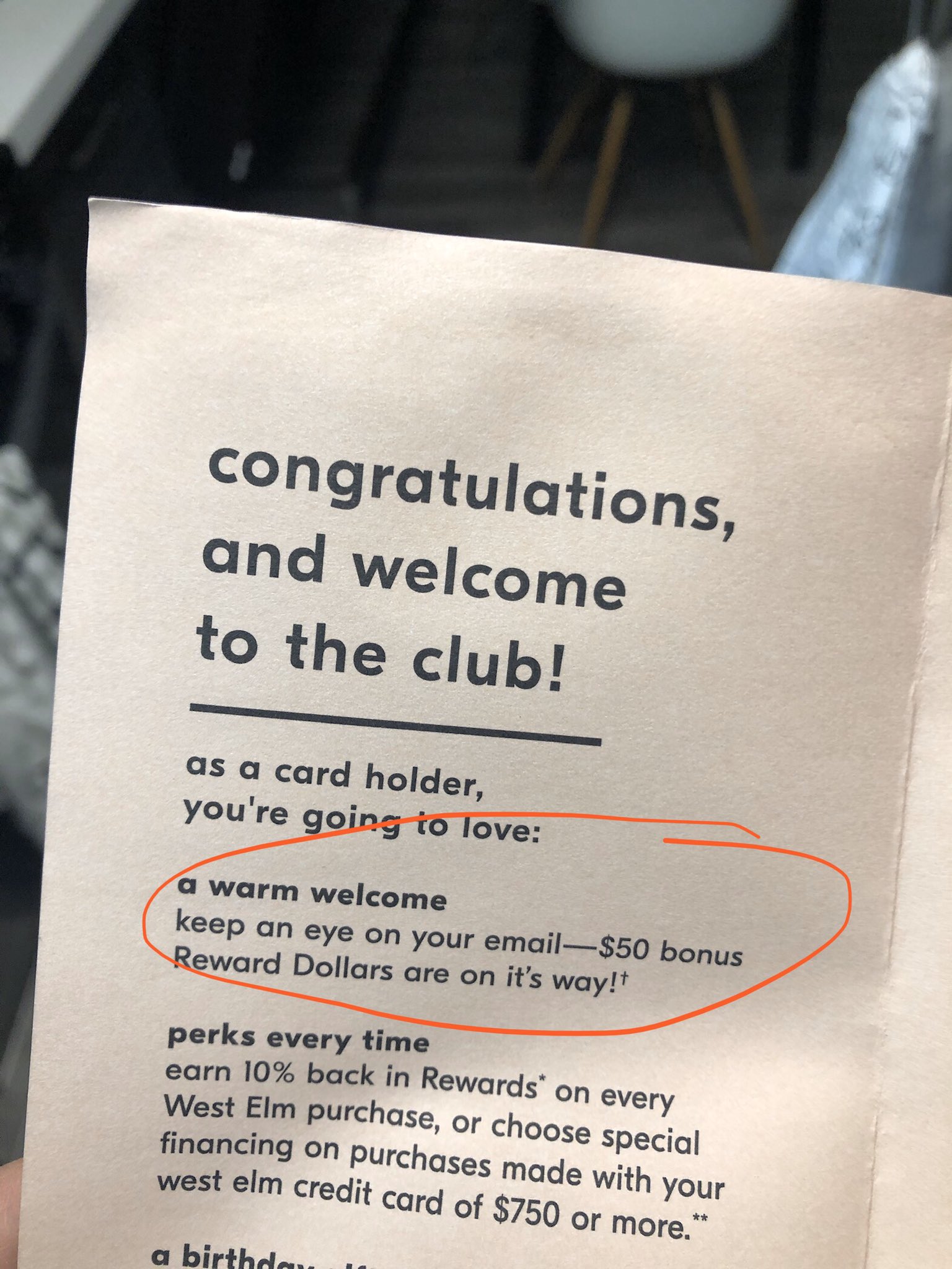 $25 bonus reward dollars on your birthday with purchase on your west elm card††. 19 reviews of west elm what a fabulous addition to wayland square! West elm coupon 20% off cut your budget! With 24/7 access to account center, you have a safe, secure and convenient way to: Reward dollars may be spent in stores, online or when shopping the west elm catalog. *each transaction placed on a promotional credit plan(s) will not earn reward(s). View your balance, transactions and statements; This is the fastest way to access the account information you need. However, sometimes there are promotional rates for new and existing card holders that might push the rewards rate up to 15%. Special welcome offer of $50 bonus reward dollars. If you thought the application was quick, just wait to see how quickly you. Earn $25 for every $250 spent or opt for 12 months special financing on purchases of $750 or more on the west elm card. Your current pottery barn, west elm, or williams sonoma credit card, issued by comenity bank, will continue to work through august 22, 2021, but you will receive a new card in the mail prior to that date.